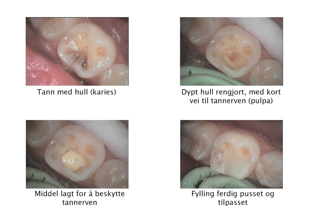 Slik behandles tannen med tannfarget fylling – Trinn for trinn